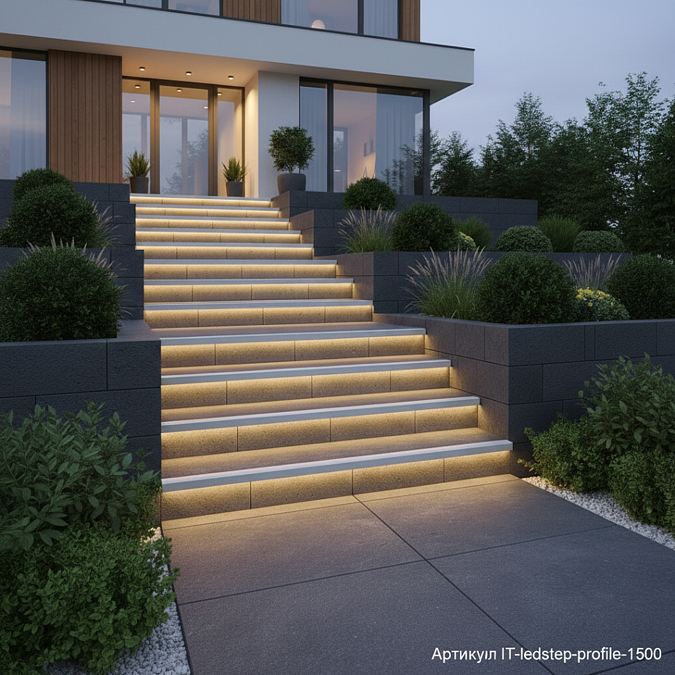 * **С профилем:** Мягкая LED-подсветка, встроенная в торец ступени, мягко освещает каждую ступеньку снизу. Вы видите четкие границы лестницы, не напрягая зрение. Это красиво, экономично (светодиоды потребляют копейки) и безопасно.